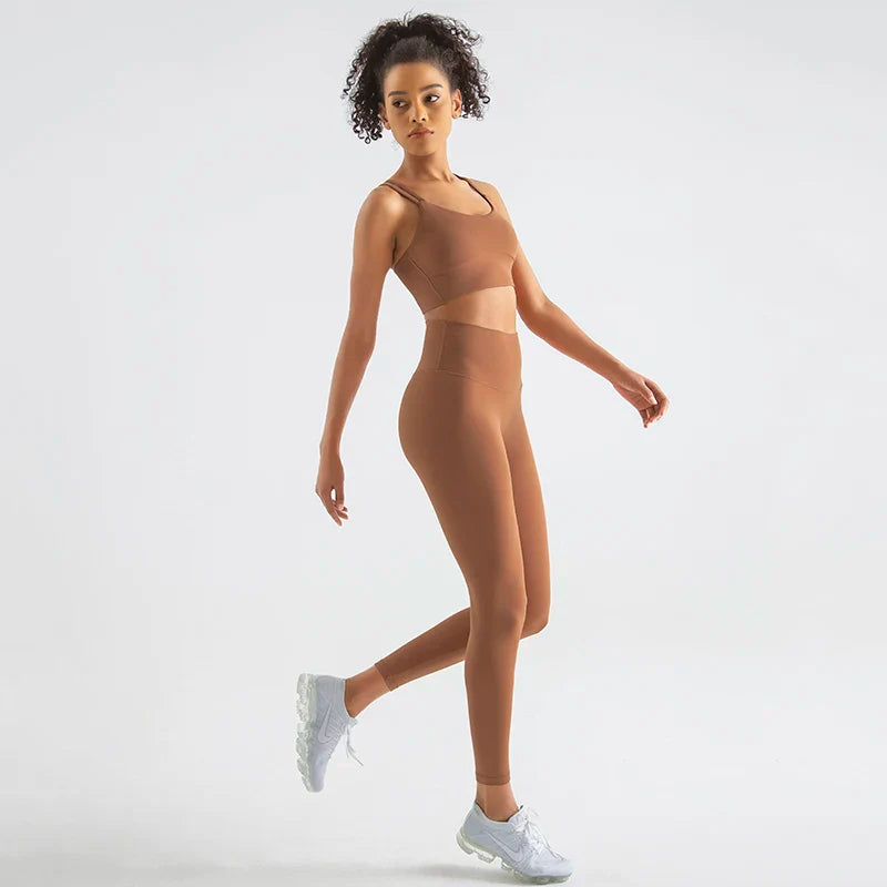 This women's yoga set is perfect for your active lifestyle. Made with high-quality and breathable fabric, it provides comfort and flexibility during workouts. The set includes a top and bottom, both designed with moisture-wicking technology to keep you dry and cool. Elevate your workout routine with this stylish and functional gym attire.
